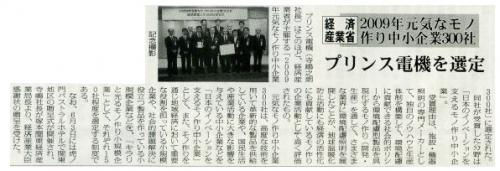 経済産業省 2009年元気なモノ作り中小企業300社 プリンス電機を選定