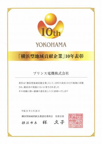 2019.3.26 林 文子 横浜市長より「横浜型地域貢献企業」10年表彰を受けました。